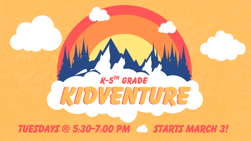 KidVenture is a free to attend, high energy, weekly program that meets kids where they are and helps them get closer to Jesus. Scripture, Snacks, Games, & Fellowship Fun! Think: A little slice of VBS every single week where we help kids develop an authentic faith by inciting wonder about our great big God.